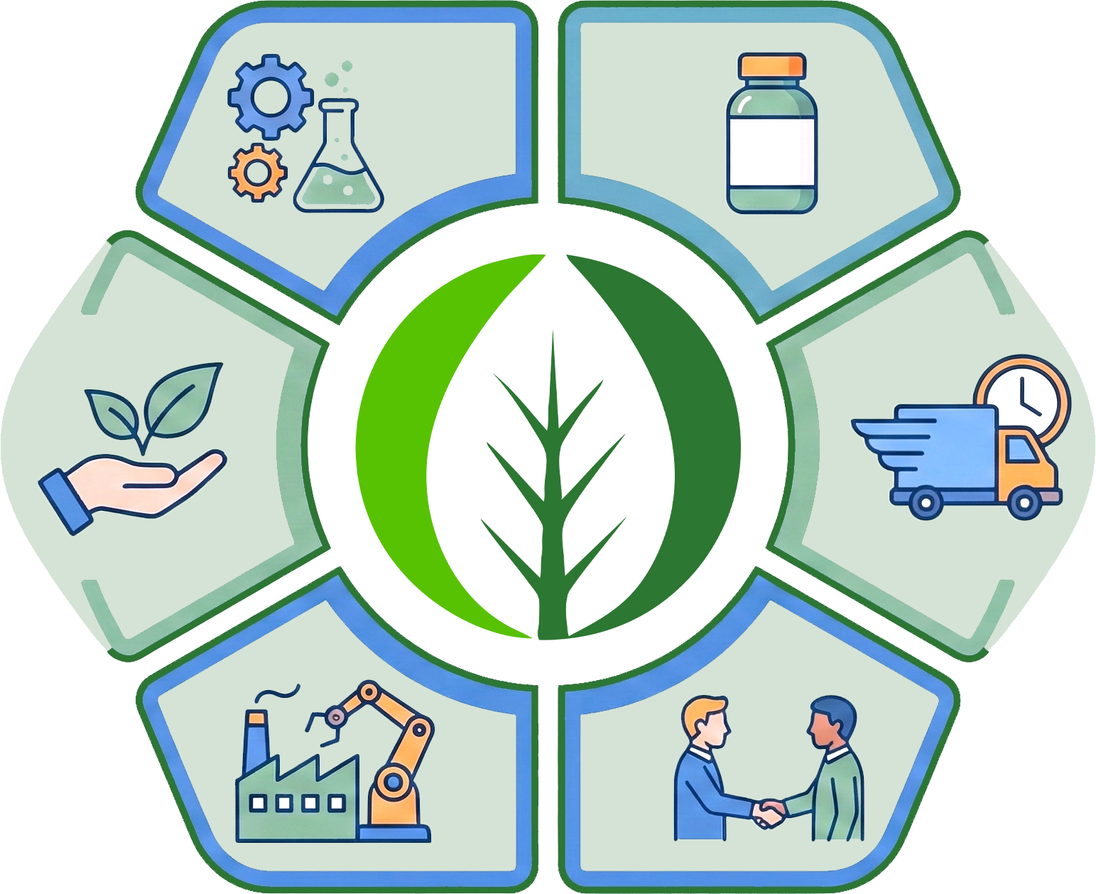 - Manufacturing: GMP-certified production for capsules, powders, gummies, teas, and cosmetics.